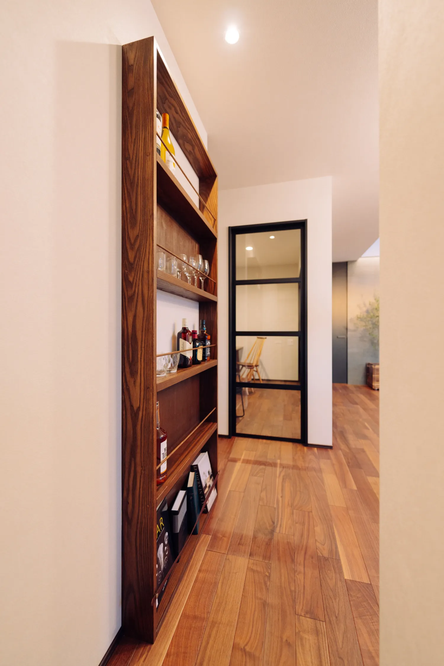 木×革の造作ワインラック