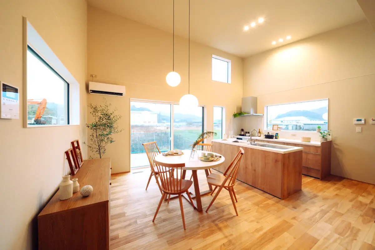 広々とした窓からは自然光が豊富に差し込み、明るく広々と感じられます。