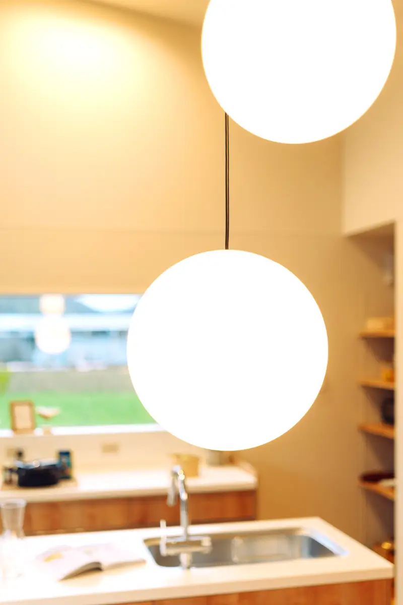ペンダントライトが空間にリズムを与え、心地よいアクセントになっています。