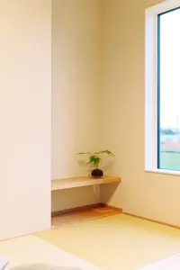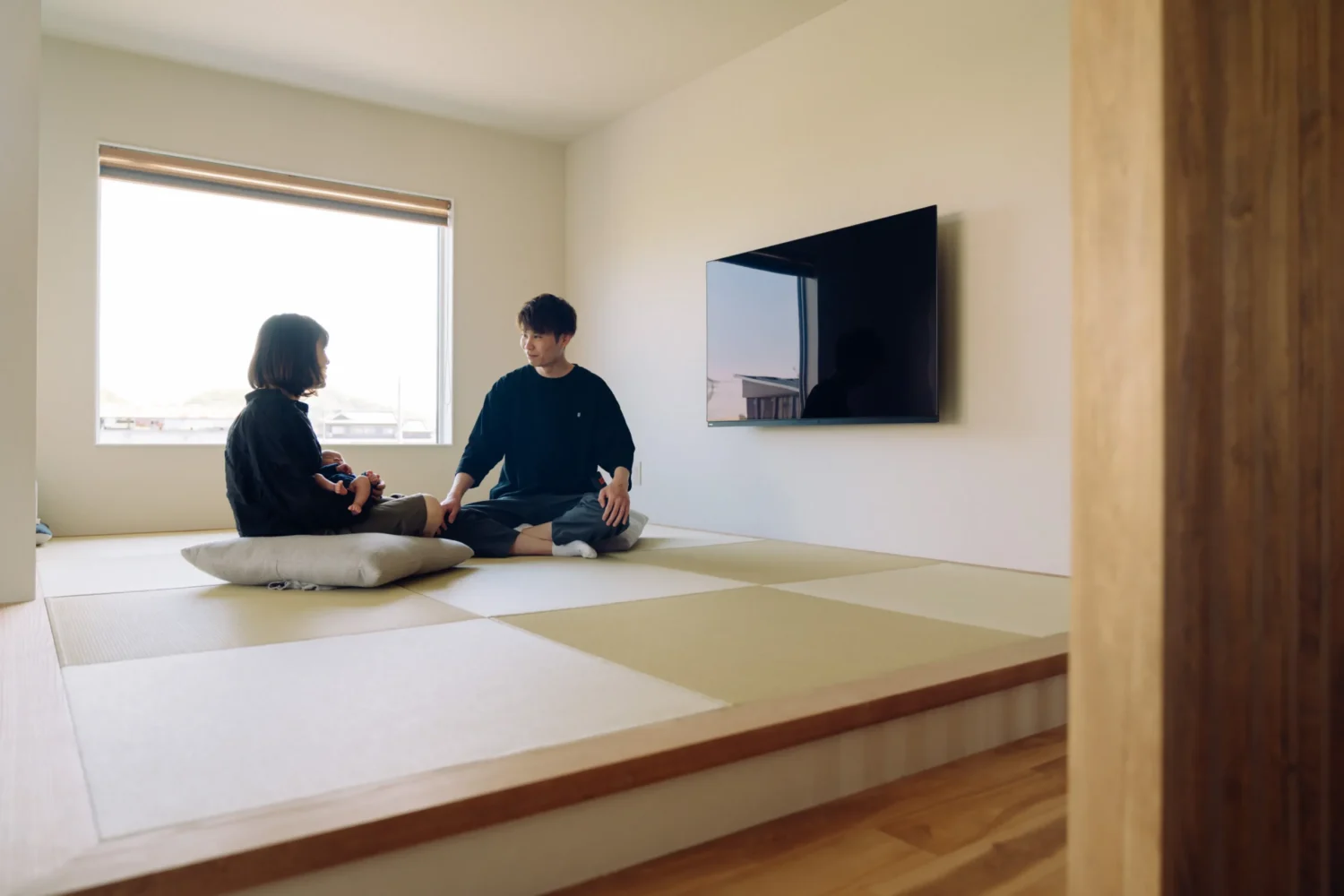リビングの一角にある和室は、自然素材の温かみが感じられる癒しの場所になりました。
