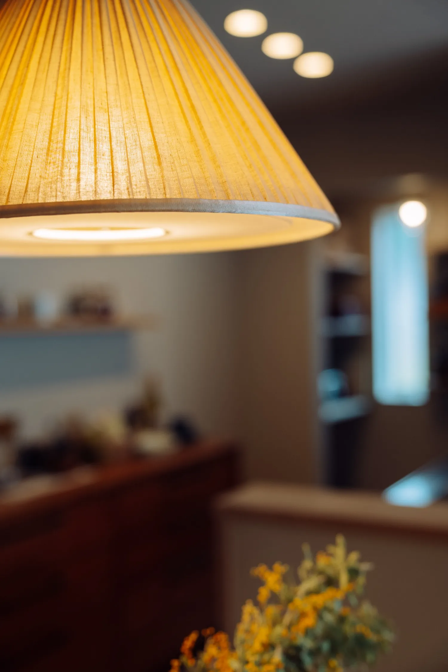 プリーツシェードペンダントと合わせた柔らかい素材感。