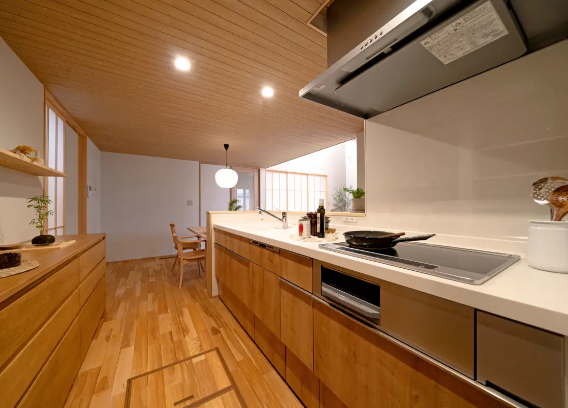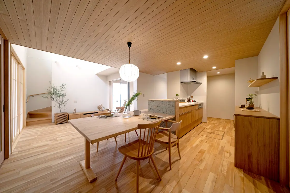 お籠もり感のあるダイニングとの対比で、さらにリビングの開放感を感じます。