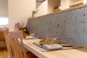 素朴でレトロな大谷石が温かみを感じさせる空間に。
