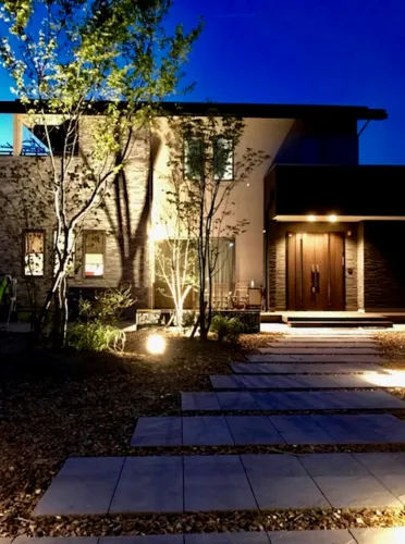 そして、玄関までのアプローチ石を斜めに置くことで広がりと奥行きを演出しました。