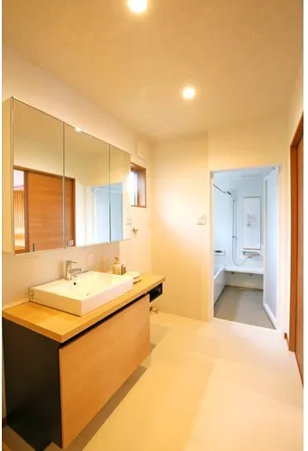 家事が楽にできるようにキッチンから脱衣室につながっているので、家事動線も考えられています。