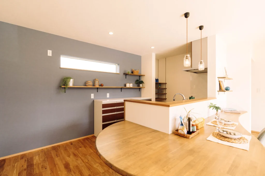 自然光と 木の香りにほっと安らぐ 憧れの平屋ハウス Livingroom リビング 勾配天井が開放的な 自然光あふれる明るいリビング 自然光にあふれる気持ちの良い明るい空間は、家族みんなが笑顔になれる場所。 ご主人こだわ […]