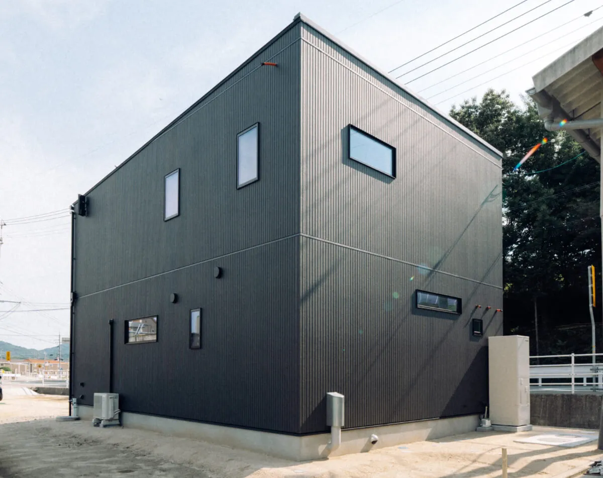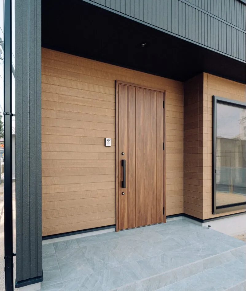 黒と木目のモダンな外観