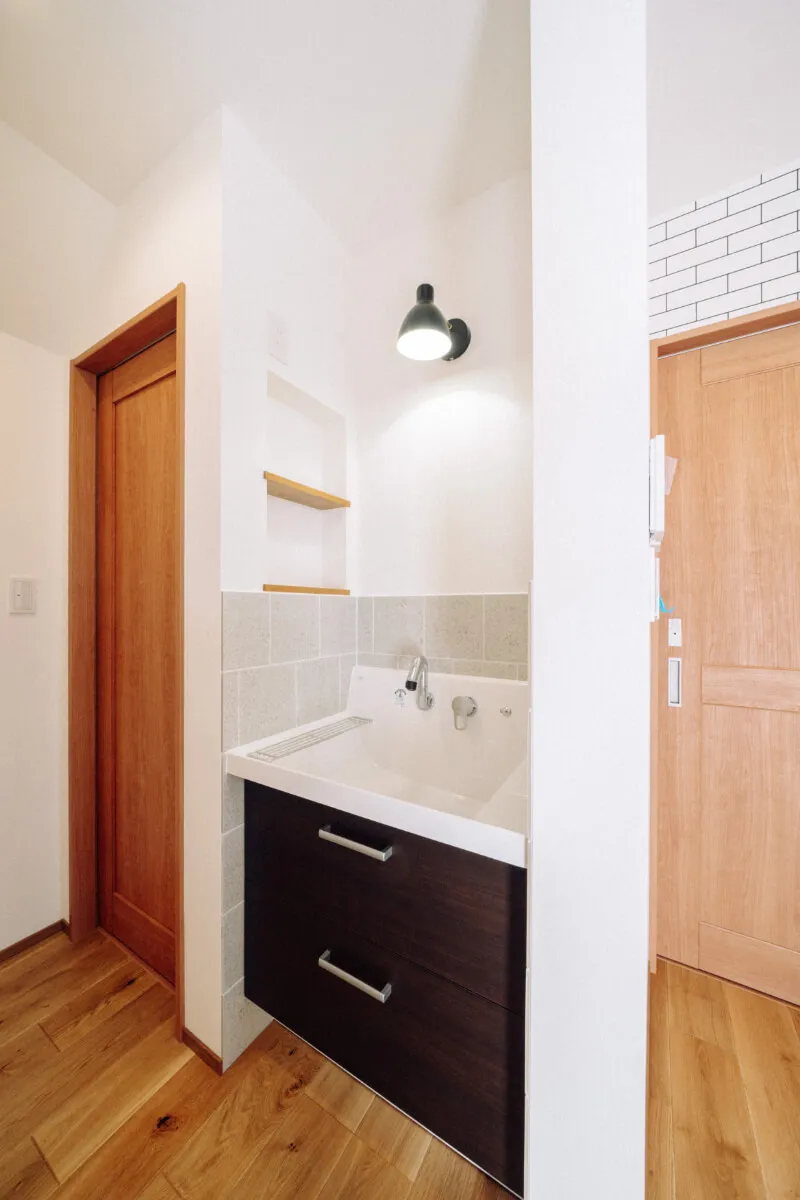 キッチンとトイレの間のスペースには、洗面台を設置。