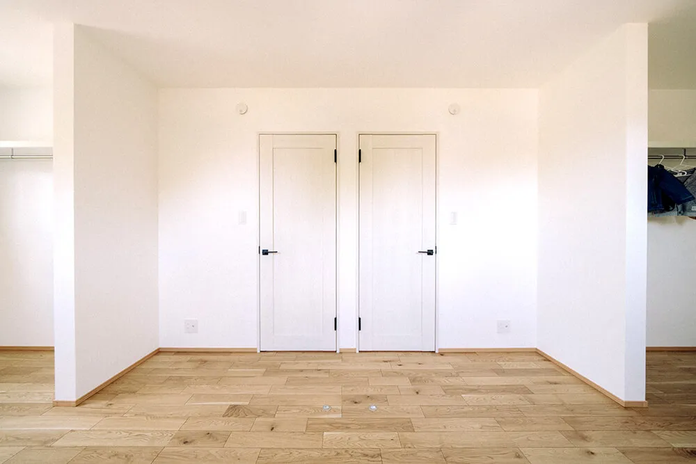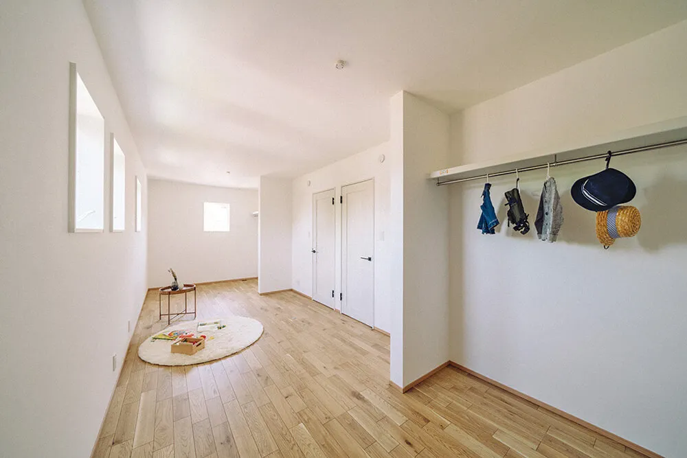 家族みんなの気配を常に感じていられるよう、子どもたちが小さいうちはあえて子ども部屋に建具をつけず、空間につながりをもたせました。