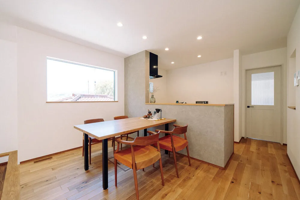 外の景色が楽しめるように、リビングの畳スペースには大きな窓を、さらにキッチンに立ったときも外に景色が見える大きなFIX窓をつけて季節を感じられる工夫をしました。