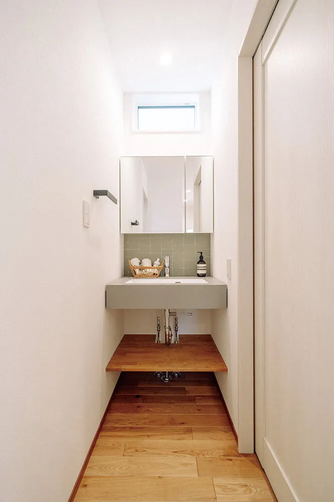 「帰宅してすぐや、トイレ後すぐに手を洗えるようにしたい…」というご要望で、洗面は廊下に出しました。