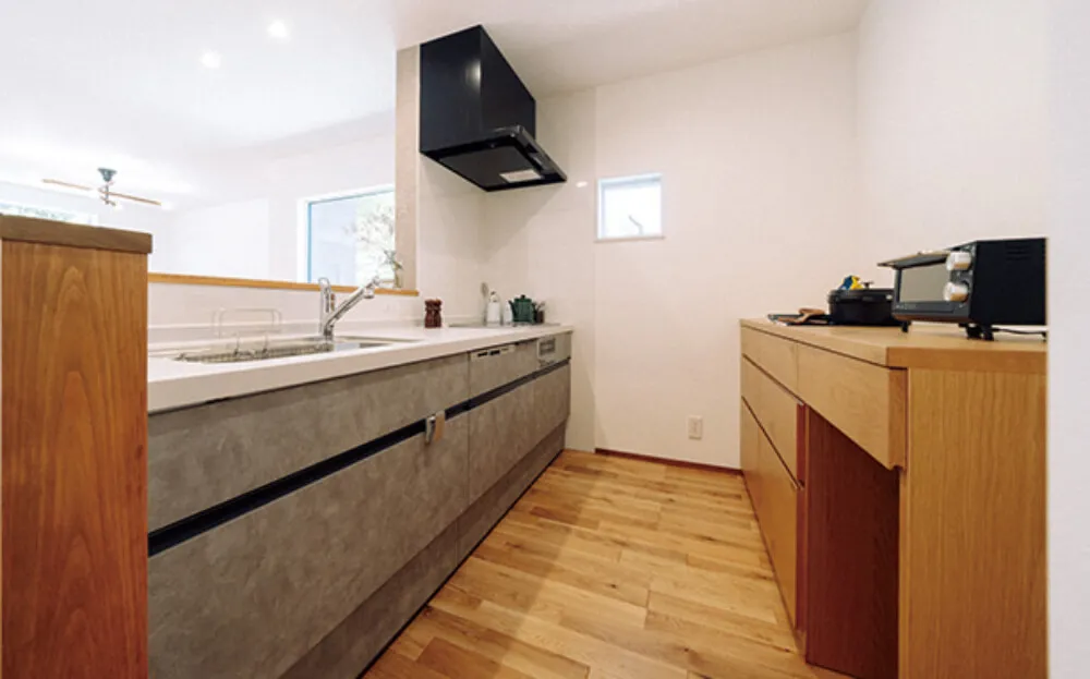 キッチンは、子どもを見ながら料理できるように、リビングが見渡せるカウンターキッチンにしました。