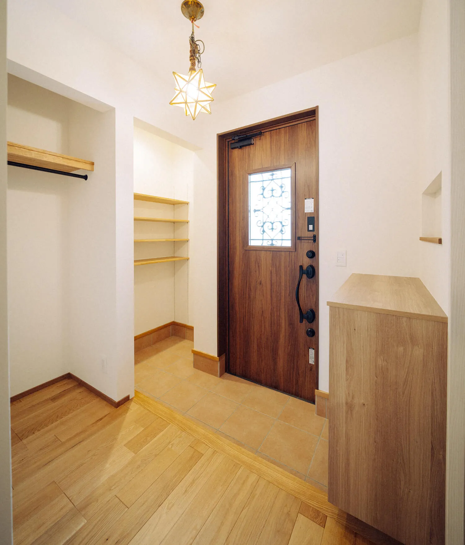 玄関入ってすぐの場所にもクロークを配置することで、コート類の収納にも困りません。