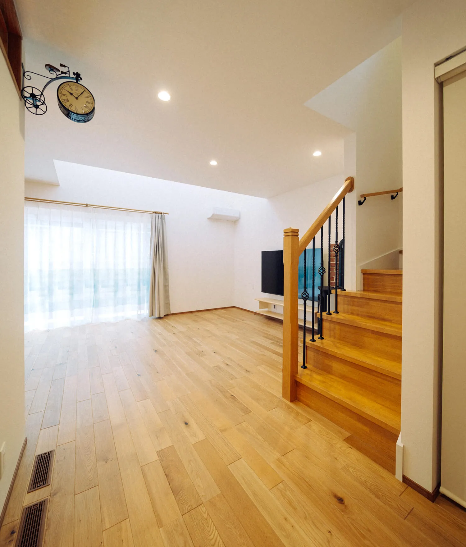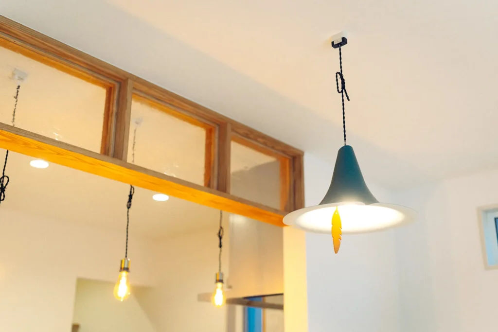リビング天井は吹き抜けにして、広い空間と明るさを感じられます。