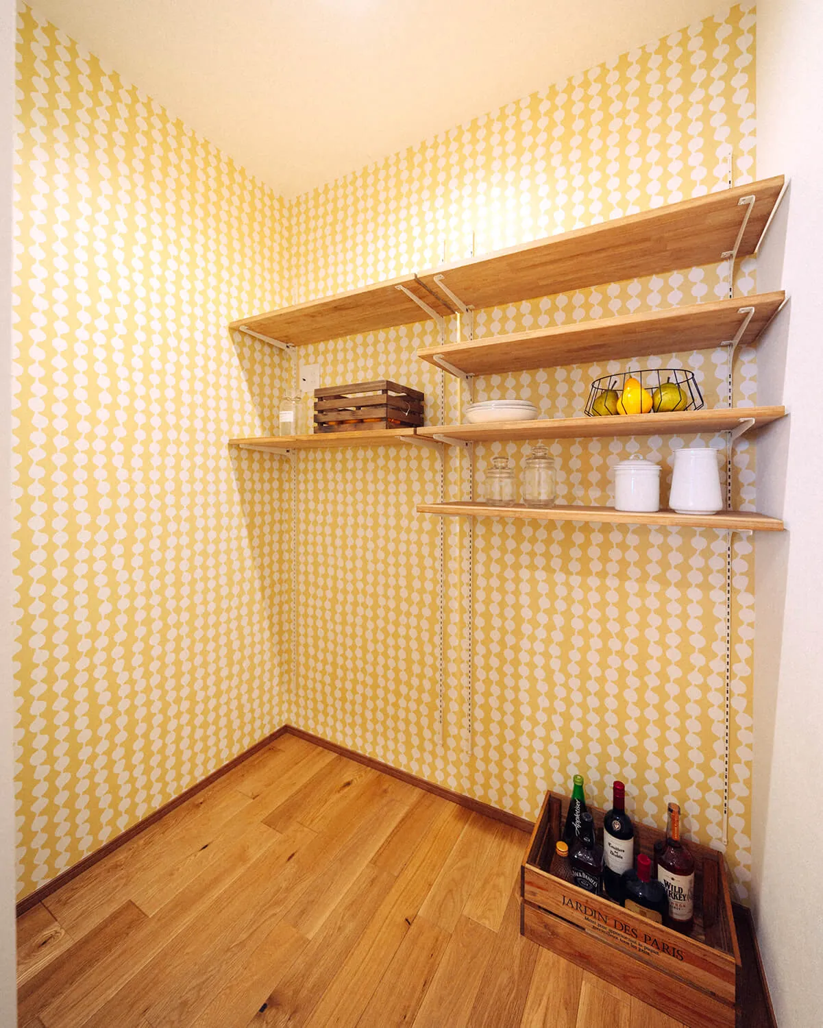 キッチン奥には買った食材や調味料類がそのまま収納できるパントリー。