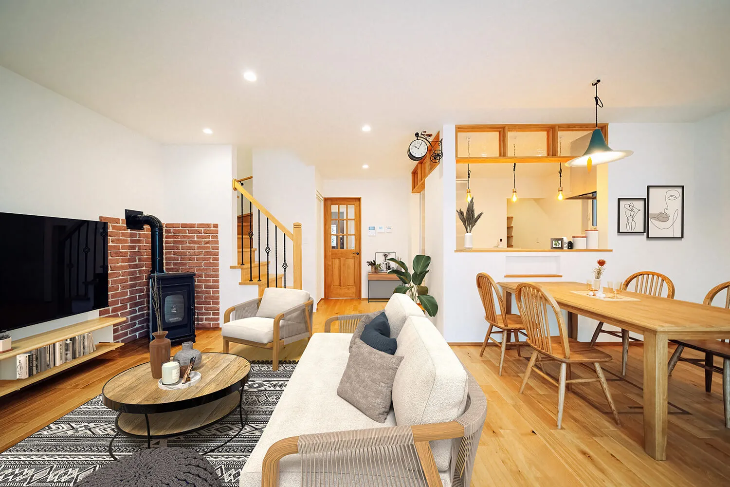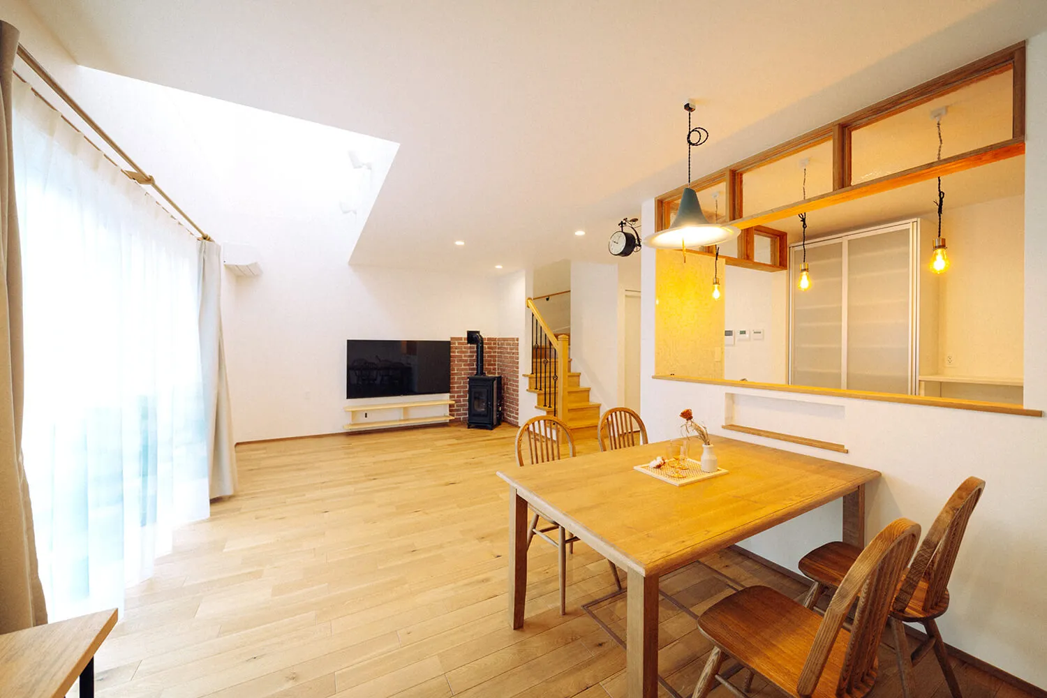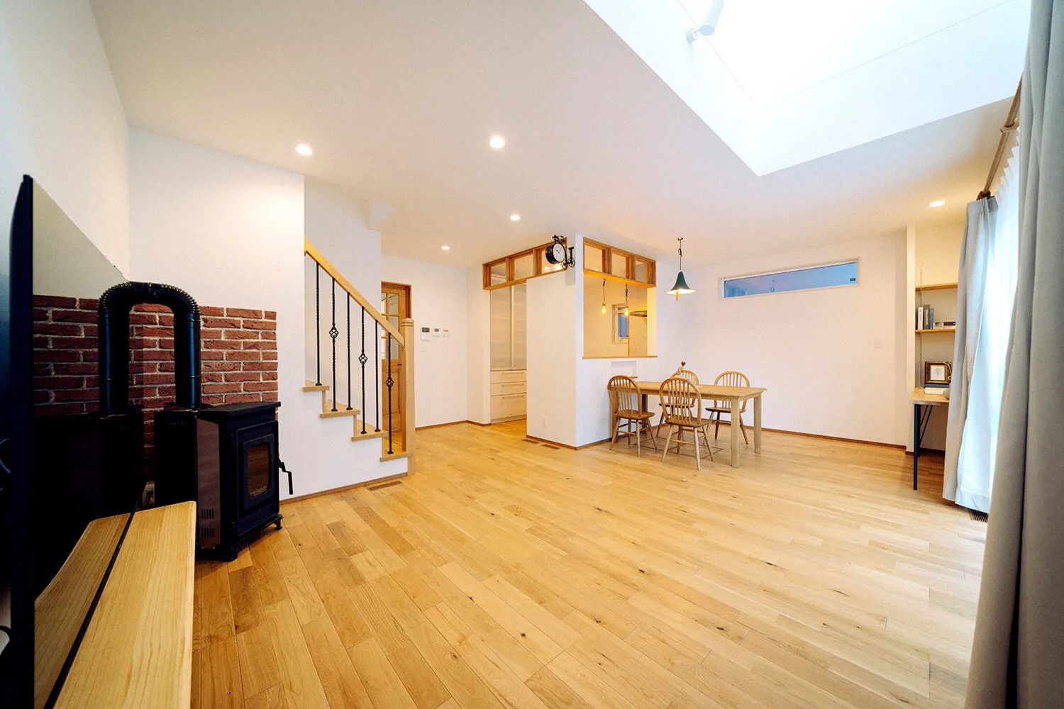暖房効果はもちろん、火の揺らぎで癒しを得られる薪ストーブを、家族団らんの場に。
