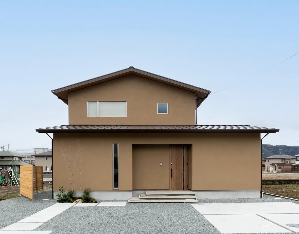 玄関に使用した千鳥砂利の洗い出しは、控えめで上品な印象を与えます。