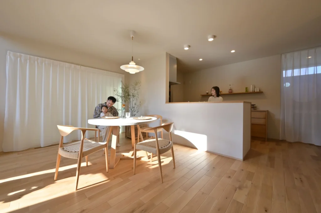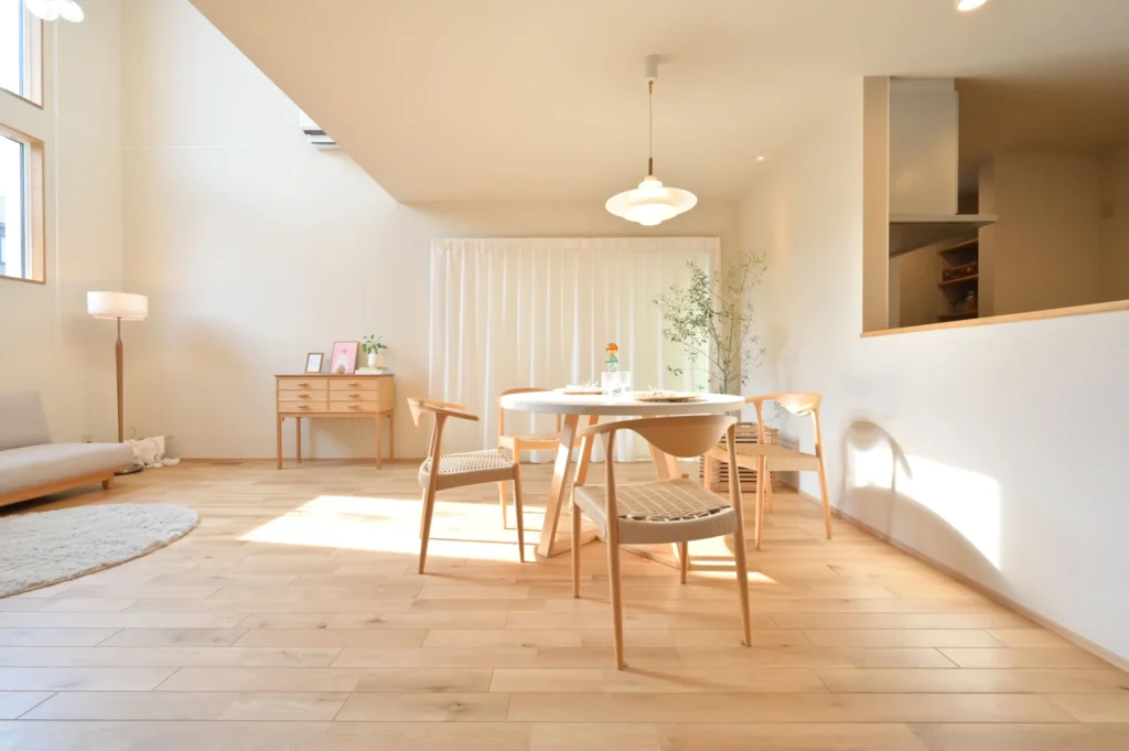 降り注ぐたっぷりの自然光が清潔感を引き立て、居心地の良い空間を作り上げます。