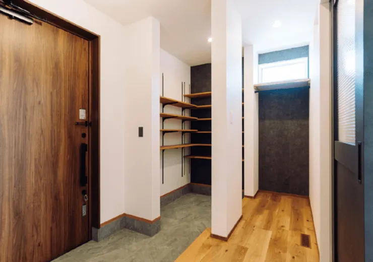 玄関横に土間収納を設け、趣味のものなど大きい荷物も置いておけます。