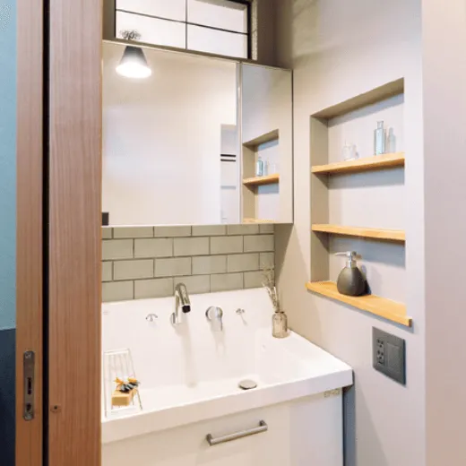 子どもが帰ったらすぐに手洗い・うがいの習慣が身につくように玄関横に洗面スペースを設置。
