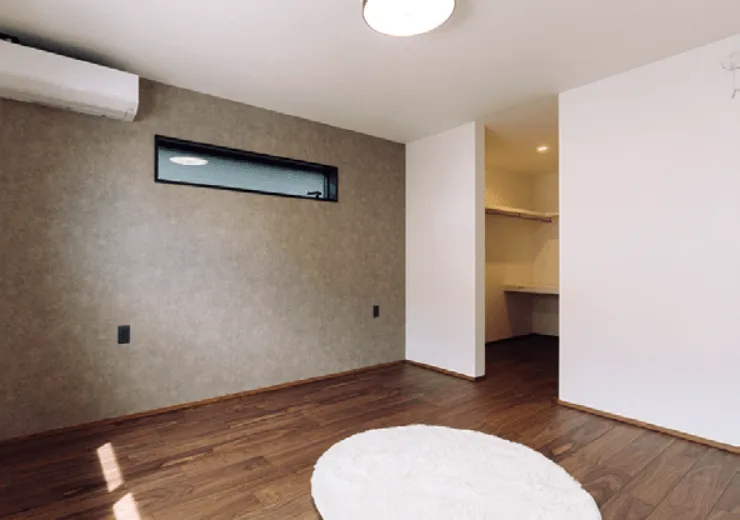 併設のWICは扉をつけずオープンにして広く見せる工夫を。