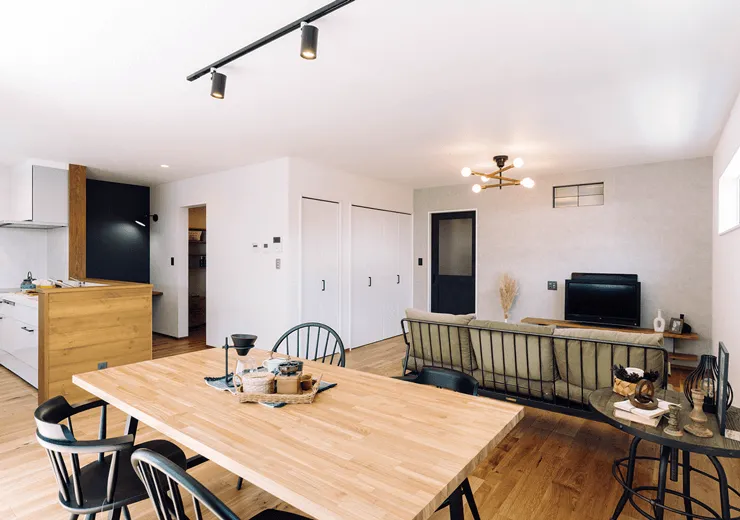 22.5帖の広々リビングは、壁掛けテレビでスッキリ。