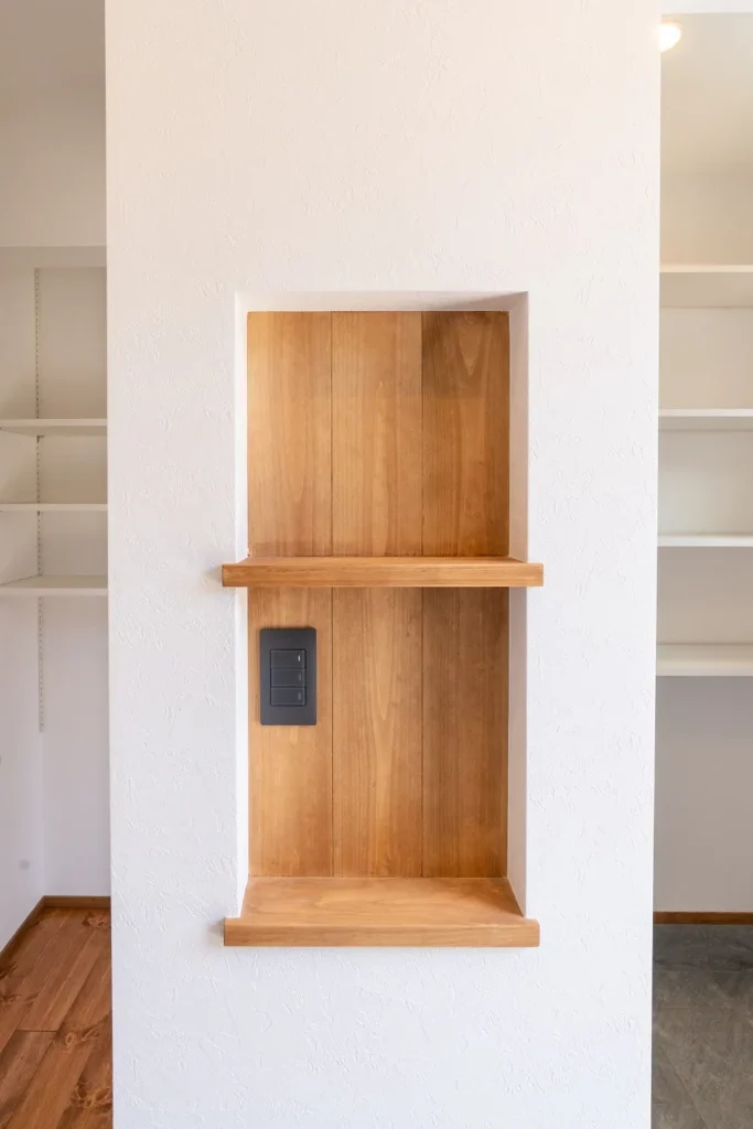 造作のスパイスニッチは見た目も使い勝手も良く、家事効率のあがるキッチンスペースになりました。