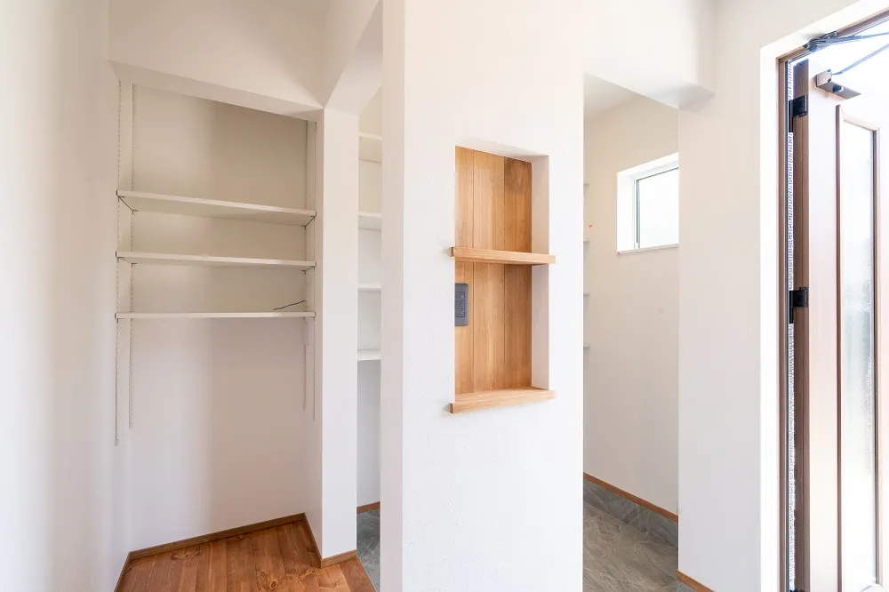 ご来客の多いお施主様には、ご家族用とご来客用に玄関の空間を分けました。