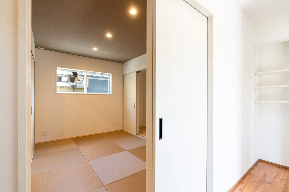 将来のご同居を考えてリビングを通らず和室に入れるように、空間の仕切り方や繋がり方を考えました。