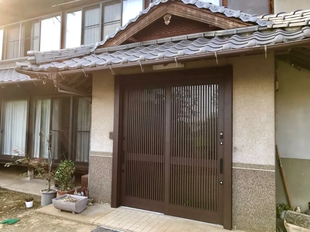建物が古くなり、構造の傾きから開閉が出来なくなってしまった玄関ドアのリフォームをさせていただきました。
