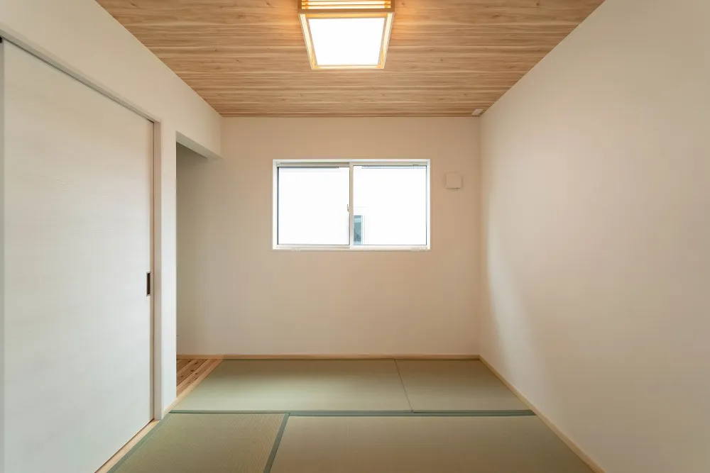 リビング横には間仕切りのある和室を設けた。個室としてもリビングとの同空間としてもフレキシブルに活用できる。