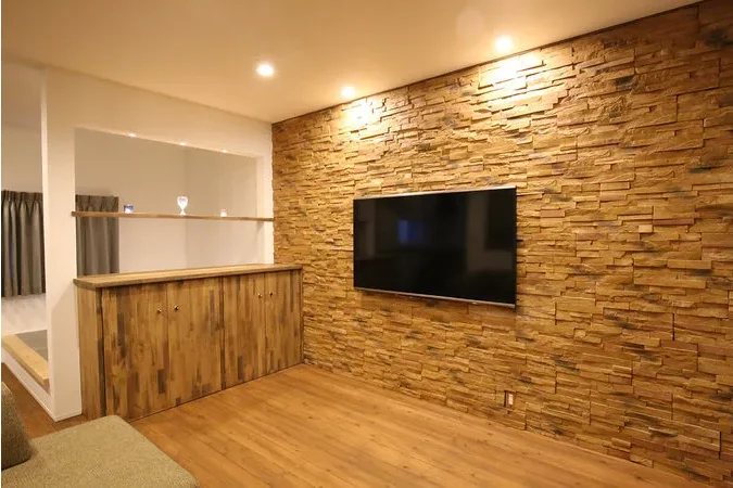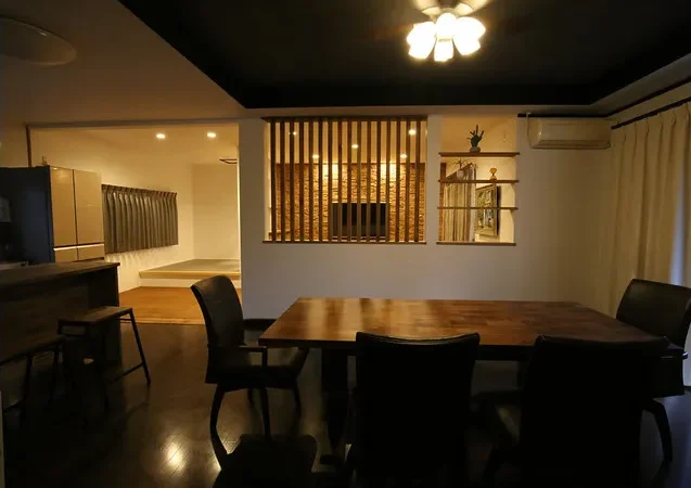 以前は事務所として使われていた部屋を、壁をなくし隣のダイニングとつなげ暖かみのあるリビング空間にリフォームさせていただいてました。