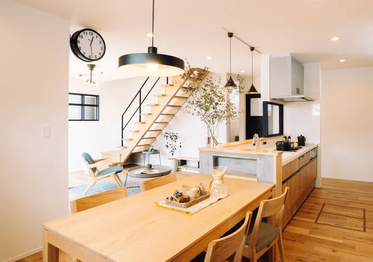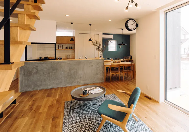 そんな、家族みんなが違うことをしていても一緒の空間を感じてホッと安心できる空間にしました。