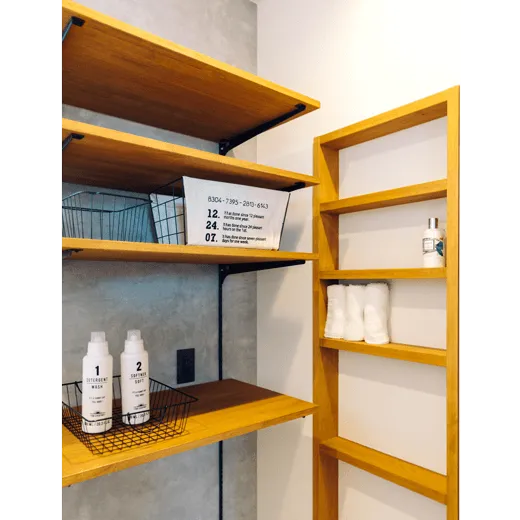 帰ってきてまず支度コーナーに荷物を置き、洗面所で手を洗って、リビングに入るという習慣も身について◎。