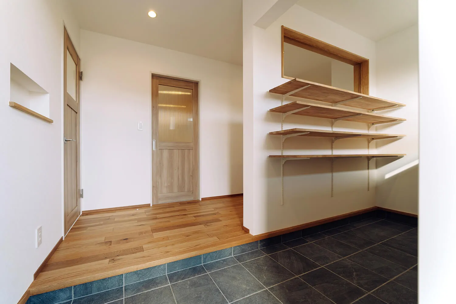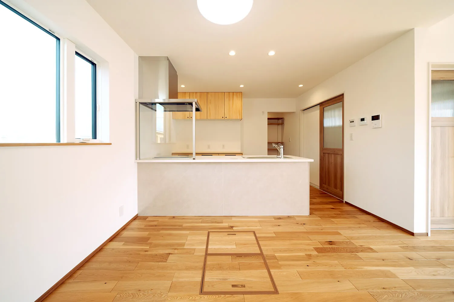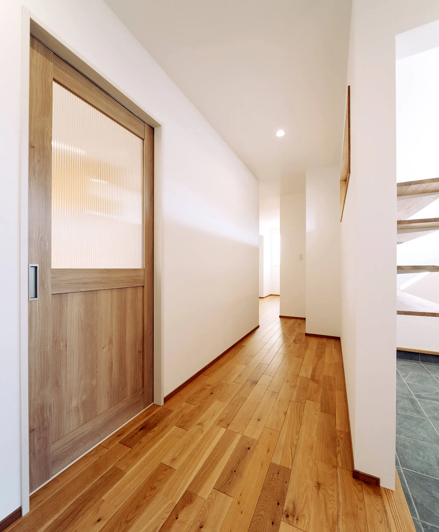 明かり窓を廊下側にもつけることで、暗くなりがちな玄関〜廊下のスペースも明るくなります。