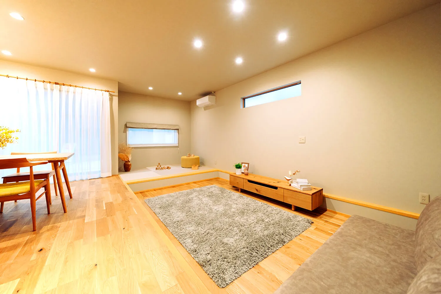 おしゃれなダウンフロアリビングが特徴的なお家です。