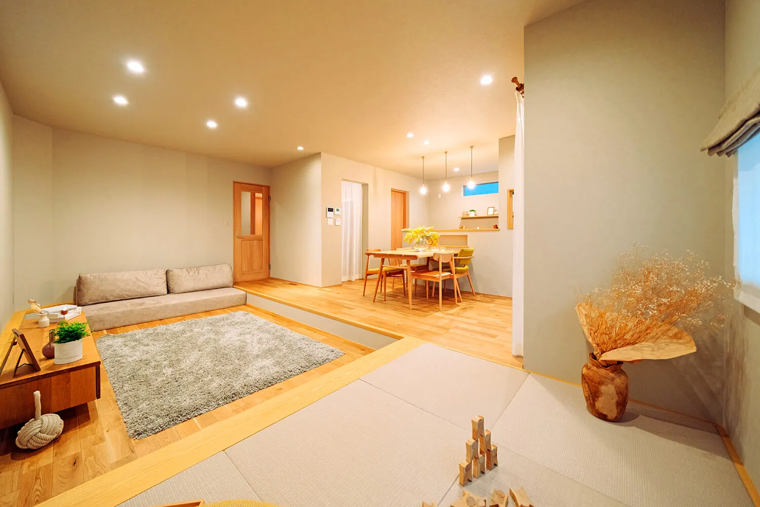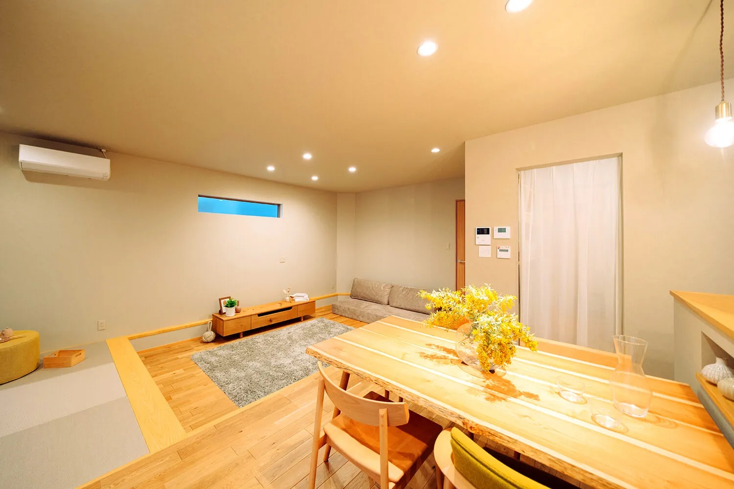 リビング横には畳スペースもあるので、家族もゲストも思いおもいの場所でくつろぐことができます。