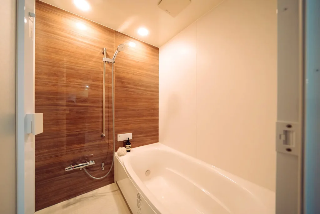 バスルームから手が届く場所にあるタオルニッチは使い勝手がよく便利!