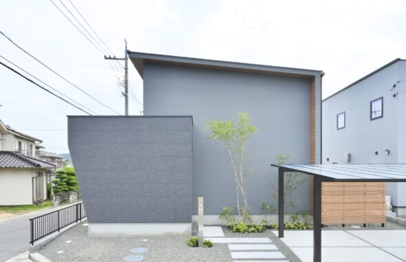 木の温もりとグレーの静けさが調和した心地よいお家